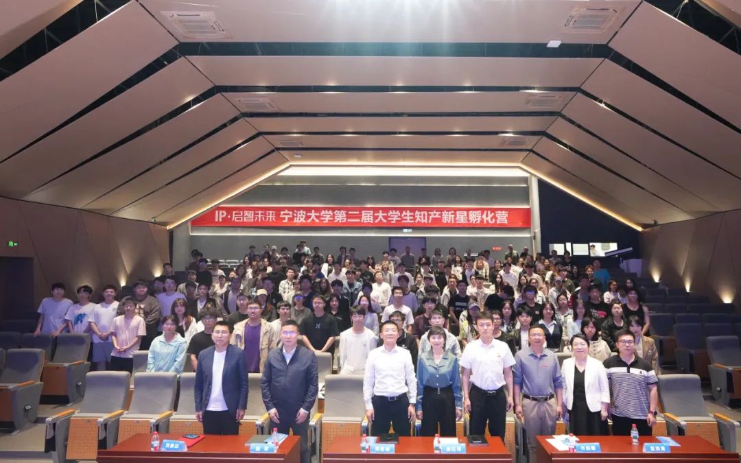 2025年4月30日下午,由寧波市市場監督管理局(知識產權局)指導,寧波大學圖書館、團委共同主辦的“IP·啟智未來——第二屆大學生知產新星孵化營”開營儀式在寧波大學錦繡小劇場隆重舉行。寧波市知識產權協會秘書長施軍、校圖書館館長劉柏嵩、副館長邵紅艷、圖書館掛職副書記劉秉印、團委副書記齊柏隆以及業務總監豆洪青等嘉