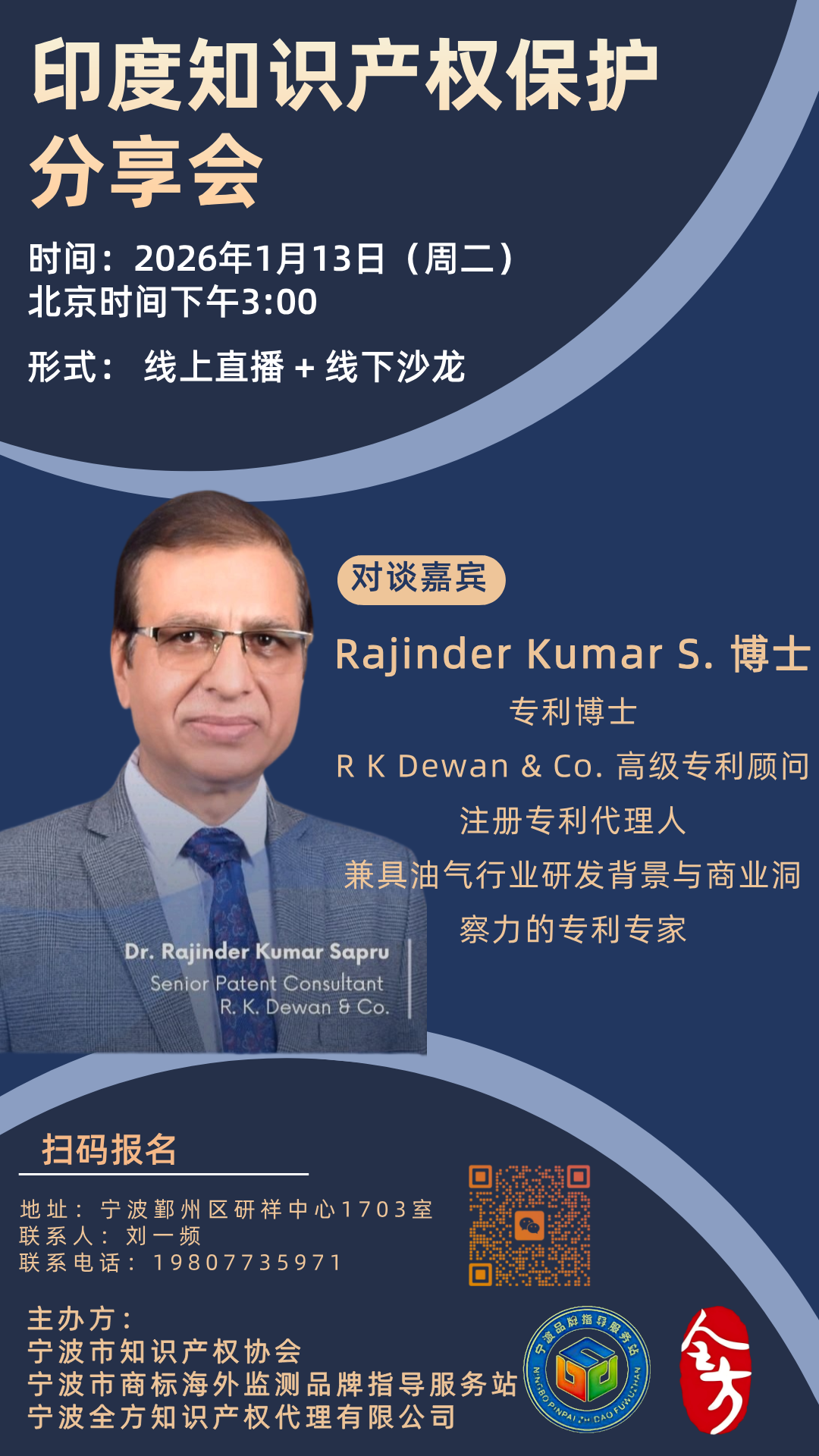 主頁 >> 協會工作 > 工作動態 > >> 【活動通知】印度知識產權保護分享會