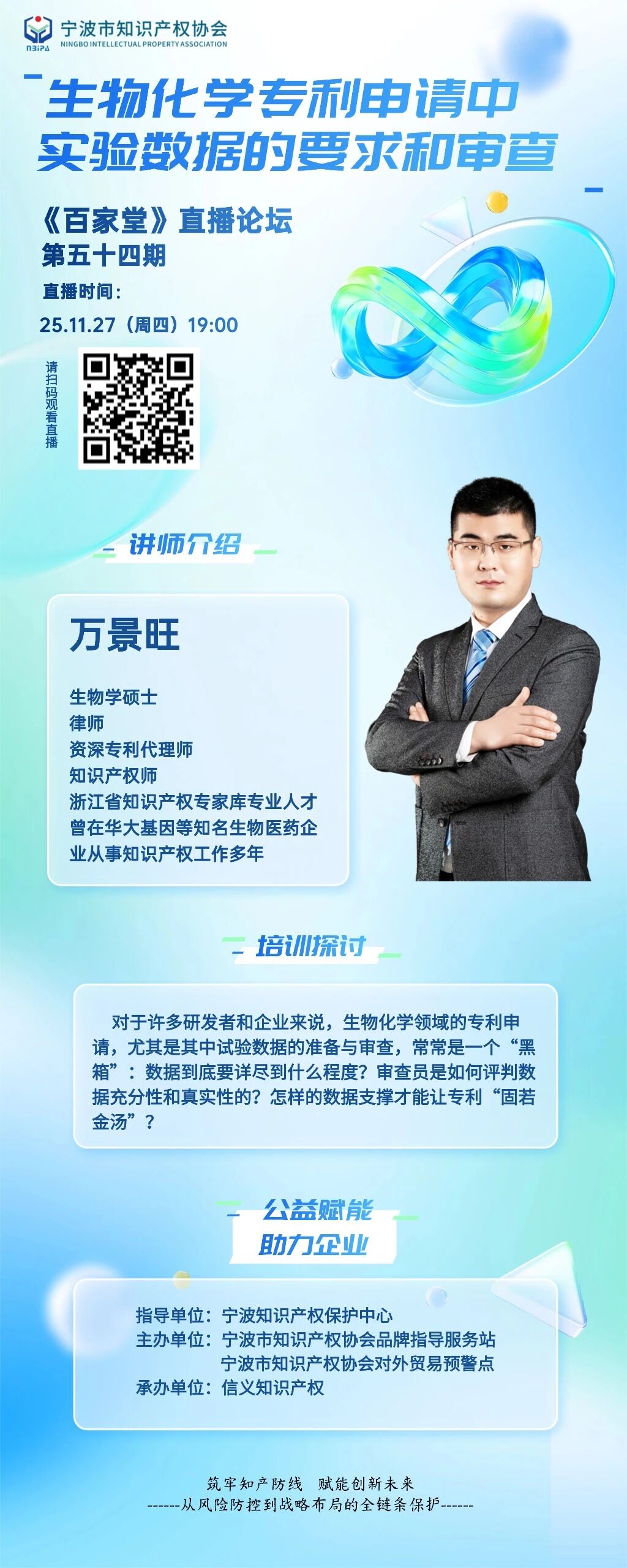 “公益賦能,助力企業”,寧波市知識產權協會《百家堂》線上直播論壇第五十四期今晚七點重磅開講!
